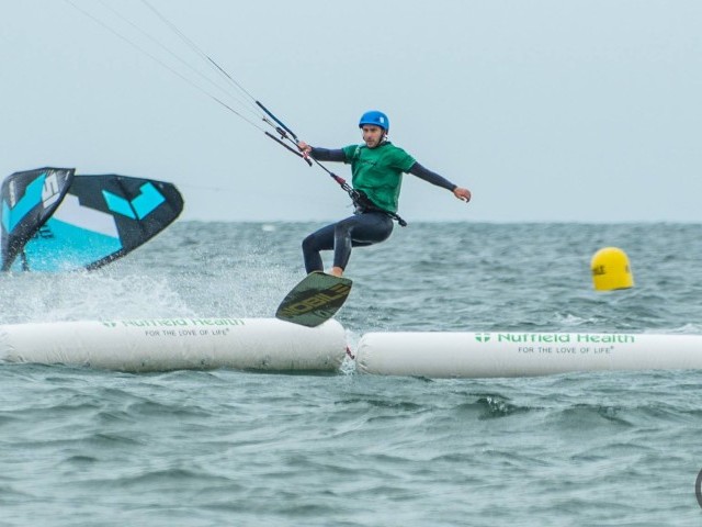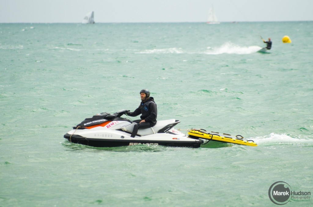 The course set out for kitesurfing involved a start line on the beach and a mostly downwind course going round buoys and over inflatables until a final sprint for the finish! Olly Lawrence & Andy Gratwick from the BKSA helped organise the program for the day which involved two heats for everyone, a semi-final and a final. The start sequence was a two-minute countdown, with a mostly reliable air horn to signal the start!