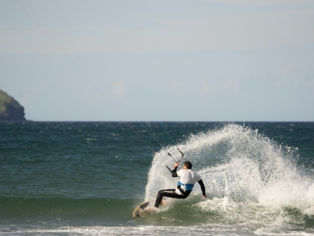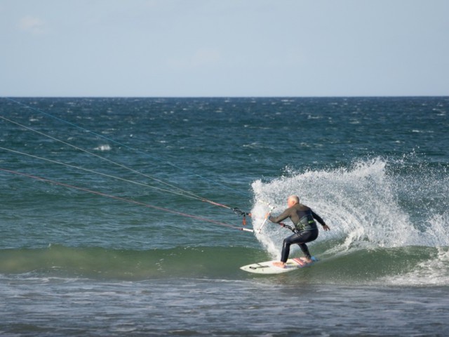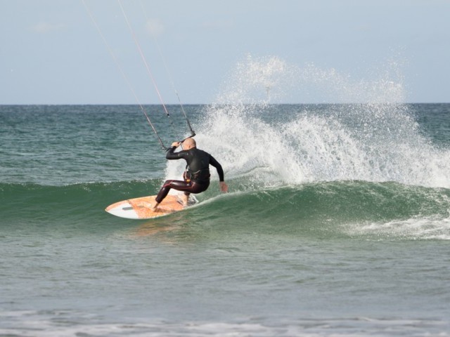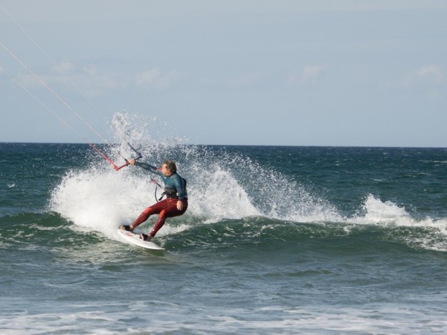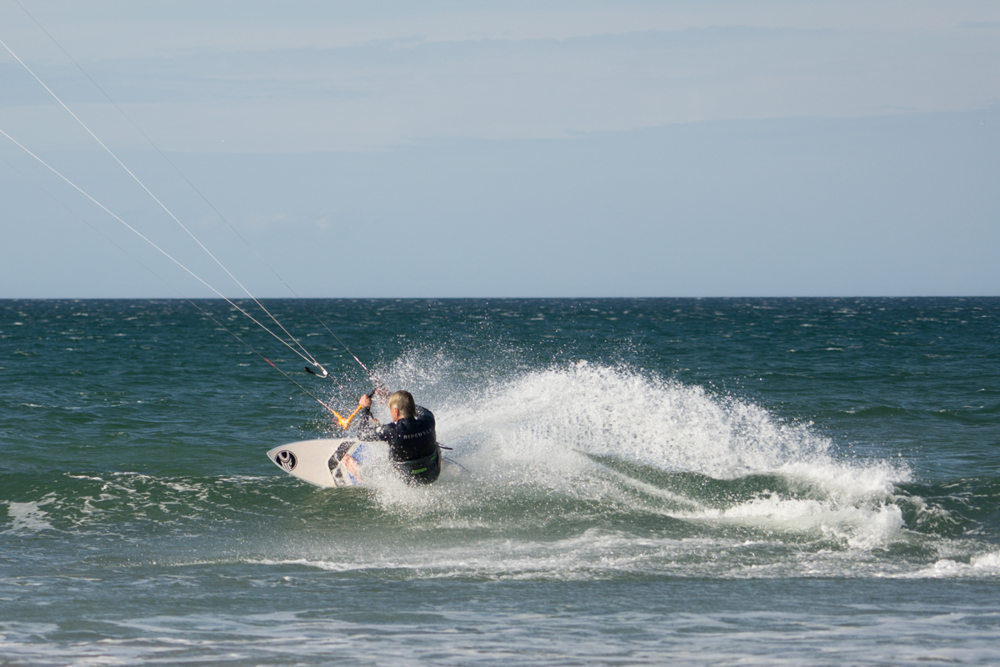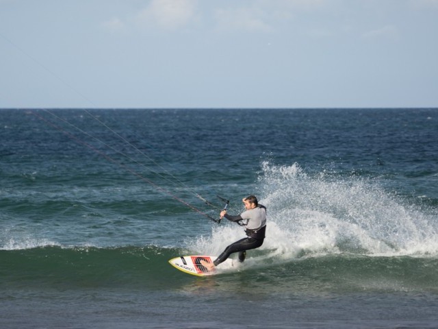 We arrived to find the wind blowing, but the waves still looking like they wouldn’t bother a Hawaiian toddler. Neal Gent, ever keen, was pumped up first along with Brad Shaw from Westward Ho. With kites flying, albeit in the incredibly gusty wind, a few of the boys decided to get wet. Having driven for miles from Scotland George Noble was keen to go on the attack on his backhand and the Spanish Armada consisting of Iain, Fernando and Hannes from Ozone looked eager to dust off the cobwebs too.