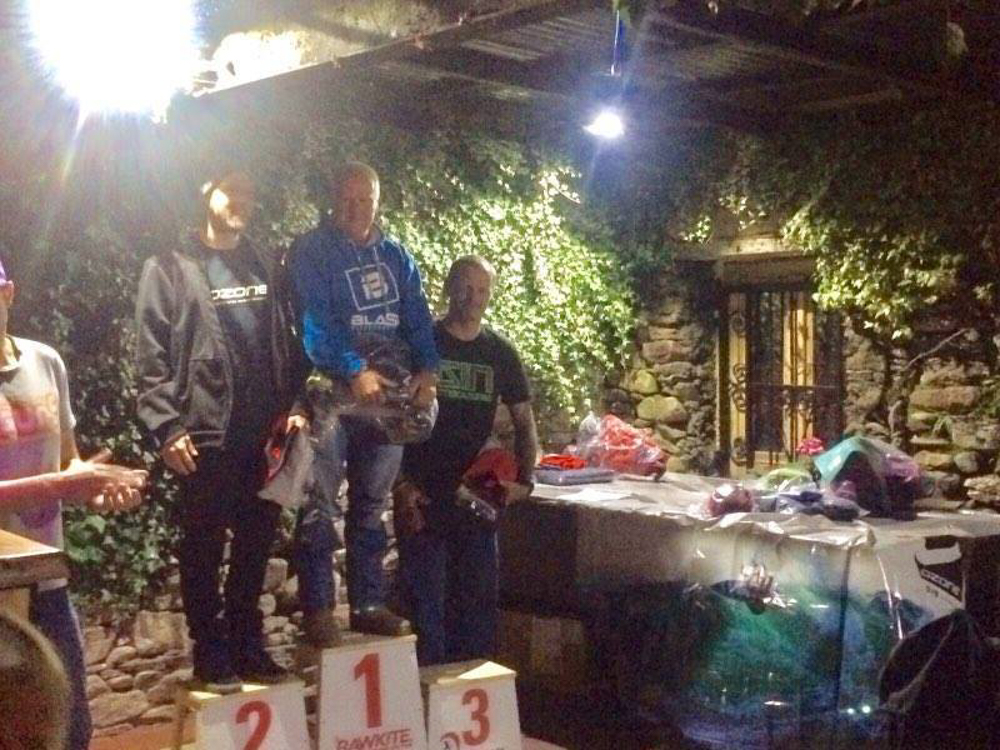 3 pm and the flags went up, 30 minutes of competition for any riders happy to have a go. Lee Harvey, Danny Morrice, Tim Harley, George Noble, Brad Shaw, Ryan Coote and Russel Field all took to the water to show off their skills. For me, this was a highlight of the week, the natural amphitheatre of the bay allowed us to park the vans on the beach and overlook the action, and there was plenty of it. Tim Harley was boosting huge floaty front rolls; Danny Morrice was going for lots of jiggery-pokery, and Ryan Coote was pulling moves that we’ve never seen before, including his signature one leg stretch yoga flier. Lee Harvey got some good tricks in too, and at the end of the 30 minutes, it was all down to the judges. The final results from the week would be announced at Natterjacks which was hosting us for our last night’s party later that evening.