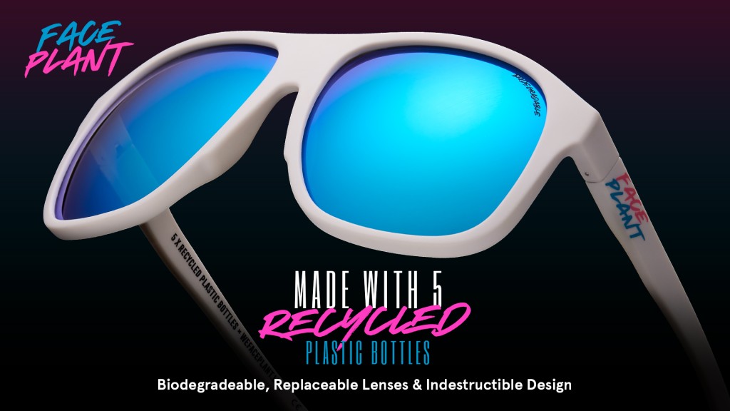 FacePlant is LIVE! – If you hate plastic bottles in the ocean and love to party in style, keep reading! These sunglasses are light, freakishly indestructible, biodegradable with a lifetime guarantee. Be a part of the mission to make the world’s most sustainable sunglasses – make sure you watch the movie and get your pair on Kickstarter!
