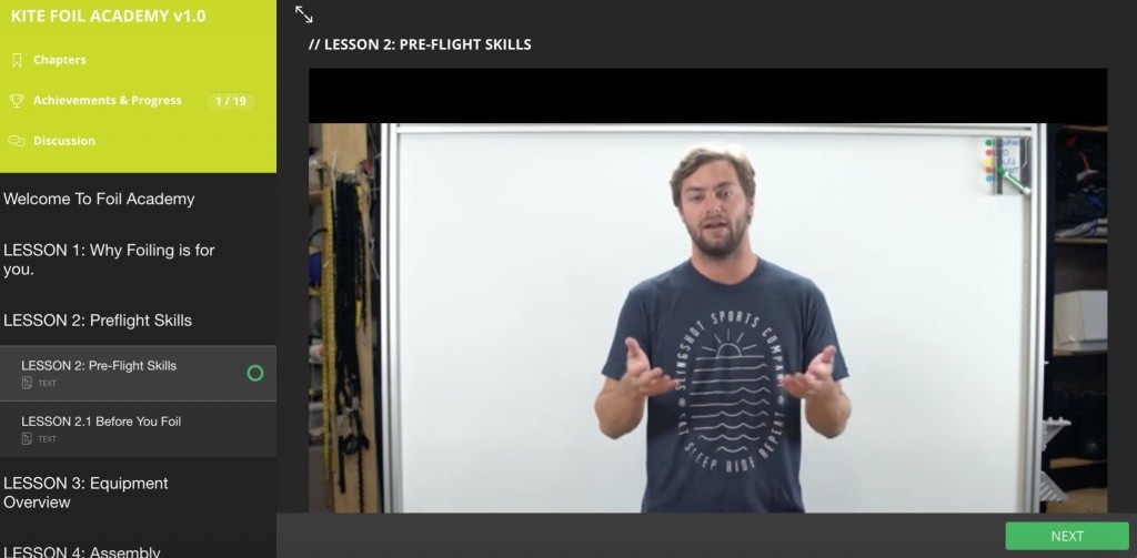 The course is free and combines both text and videos. There are plenty of foilboarding videos online, but none thus far which follow such a planned and strategic approach, so whilst it’s definitely a good idea to get as much info as you can from friends, forums and videos, I can recommend signing up to the Foil Academy program and working through the short but comprehensive courses.