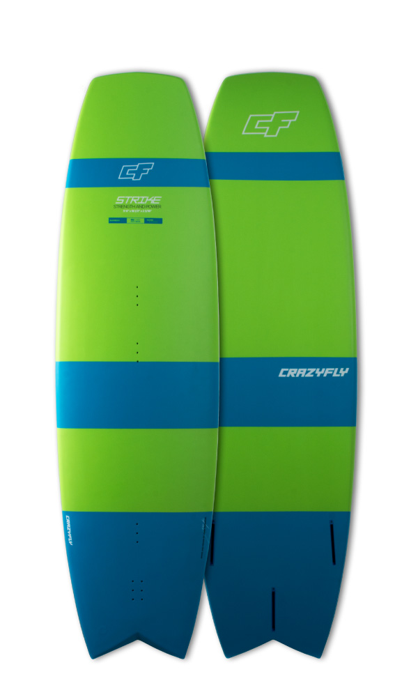 The Strike delivers maximum performance in small to medium surf and works great for strapless freestyle tricks. It features a cut off nose shape for powered snappy turning and straighter outline for more control in the chop. This outline allows the Strike to have as much volume as regular surfboard shapes, even with the cut off nose. The volume of the board is more centered under the rider’s feet and provides easier and more precise control. With a wider center, straighter outline and cut off nose, the Strike is extremely easy to ride. For 2017, the Strike is made in Europe and features a PU core and Polyurethane resin construction. Overall, the new construction is lighter, but still strong enough for air trick landings. The deck is reinforced with Bamboo for added strength and more dynamic feel. If you are looking for an easy to ride dynamic board for small to medium surf and some strapless airs, the Strike is the right choice.