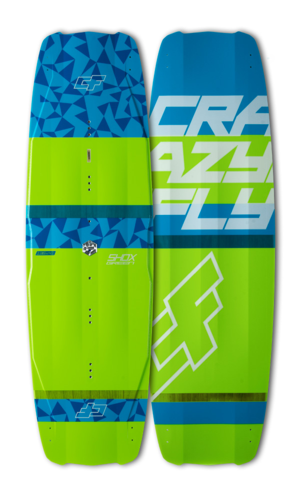 The 2017 Shox Green is the ultimate upwind machine and the most comfortable freeride board in our range for intermediate to advanced riders.We are extremely proud to offer the most environmentally friendly kiteboard. With help from our supplier, new technologies, and new machinery, we are able to produce the Shox Green edition kiteboard with almost zero waste in production. The Shox Green takes advantage of Multi Channel bottom shape and Concave Tips which provide unmatched upwind perfomance and increase the overall all-round abilities of the board. Step Cap deck technology allows for thinner rails and sharper edging. The construction layup combines Recycled fiberglass and X carbon on the deck for a dynamic feel and optimized pop. Full wood core and the Multi Channel Bottom shape make up for the most comfortable freeride and top notch upwind performance.