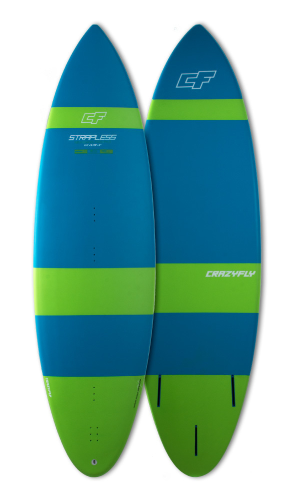 The Strapless is designed for newschool freestyle strapless tricks, small waves and light wind conditions. For 2017, the Strapless has not only a brand new PU core and Polyurethane resin construction, but is now coming from a new factory in Europe. Overall, the new construction is lighter, but still strong enough for Strapless air trick landings. The deck is reinforced with Bamboo for added strength and more dynamic feel. The Strapless has a wide outline, lots of volume and and the biggest surface area in our range. With these properties and a thruster fin set up, the Strapless gets going really early even in light wind conditions. It will also not disappoint for surfing small waves. The strapless feels light, lively and is a lot of fun to ride no matter if the wind and waves are hauling or not.