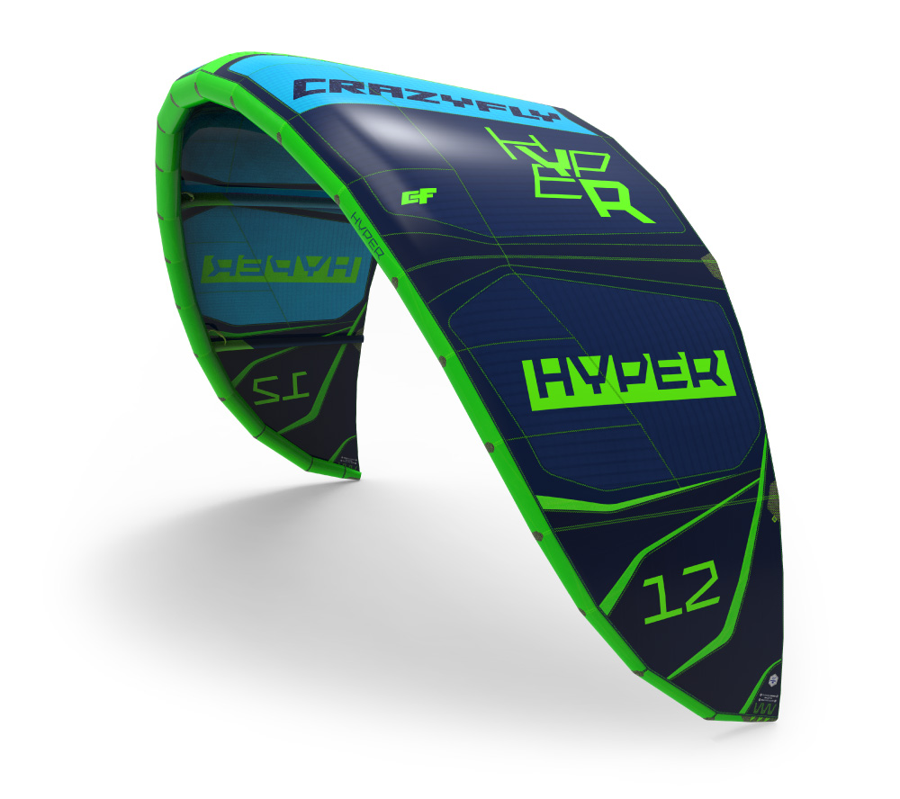 Meet the long-awaited king of the air. This rocket launcher of a kite takes you to the moon and back, from zero to hero, in a split second, it delivers. With the most durable five strut kite frame we have ever made, the Hyper is rock solid. No fuzz in the air, just pure lift, glide and smooth touch down. With exceptionally light bar pressure, it gives power on demand and ultimate control for this big air boosting kiteloop machine.