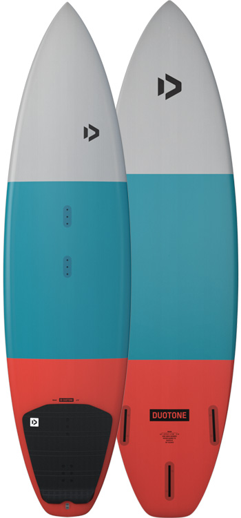 The fuller outline makes the Pro Wam slightly more compact than most traditional squash tail shortboards and is the key to its unique do it all abilities. It has excellent handling in light winds and smaller waves while still retaining the impressive high speed and sought after big wave performance that riders love. The Pro Wam excels in most conditions from small to large waves. It is the one board does it all board for all your travels, being capable of handling all sorts of conditions. The subtle grab rail, optimised volume distribution and double concave deck complete one of the most impressive surfboards in the Duotone range. This season also as a 5´6 version for lighter riders.
