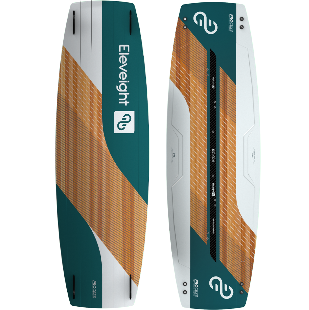 Version 5 of the Process uses new ABS rail material to enhance impact resistance. When paired with the 3D Paulownia wood core, it delivers an outstanding flex pattern that is comfortable to the knees. The Parabolic Rail Shape (PRS) design improves the grip and upwind abilities, and the behaviour in chop tremendously reduces spray. The 50 mm carbon stringer smoothes landings, and the decreased thickness in the tips creates the best linear flex, enabling highly responsive riding characteristics. The unique enhanced features of the Process continue to make it wildly popular amongst kitesurfers the world over.