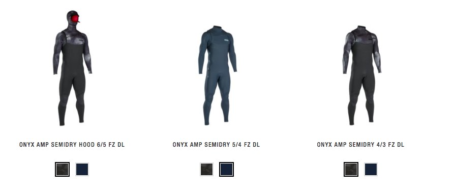 ION’s 2019 Strike Amp Collection (available with back zip or front zip) Semidry (6/5, 5/4 and 4/3)