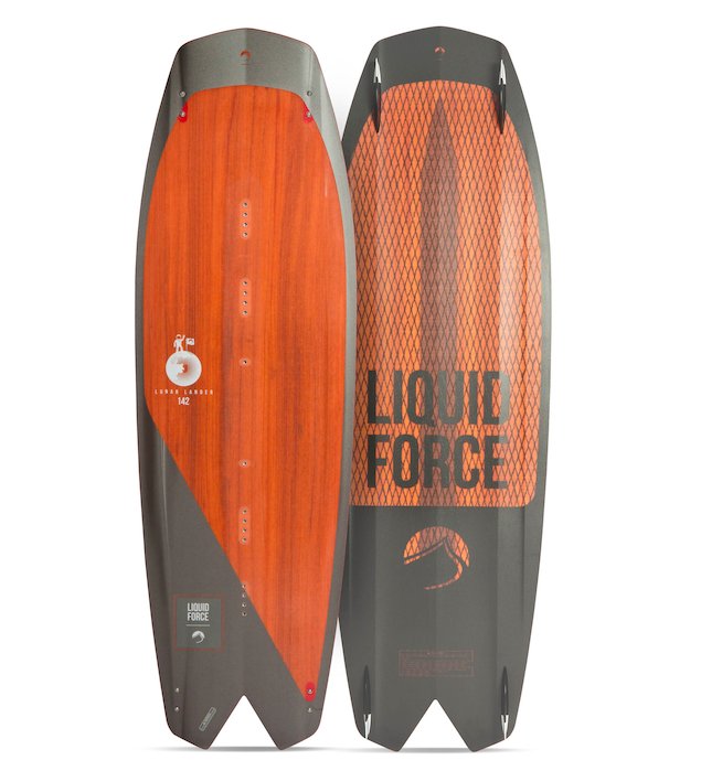 Driving off of the fantastic sensations created on the water from the other boards in the Liquid Force Hippy Stick lineup, the Moon Patrol and the Space Craft, we are proud to present you the ALL NEW Lunar Lander. The Lunar Lander is the brainchild of longtime team rider Jason Slezak and LF’s engineering wizard Peter Mehrhof. Longing for the same plush ride, edge control, and displacement of water on landings from the double concave of the Legacy, Jason and Peter drew inspiration from progressive powder slashing and slope carving snowboards and transferred the most desired components from the frozen water realm of the mountains to the liquid realm of the oceans, lakes and rivers for your creative kiteboarding enjoyment.
