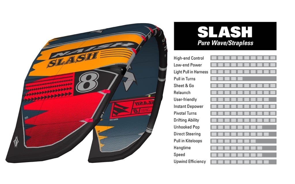 The Slash has established itself as Naish’s premier wave kite, providing incredible down-the-line drift and stable flight, perfect for park-and-ride style kitesurfing.