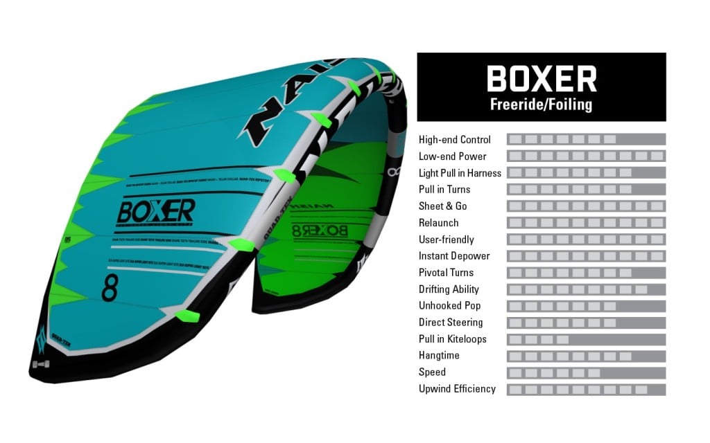 Each size has saved up to 280 g, making the boxer the lightest kite on the market. All these precious grams saved translate to weight the wind does not need to carry anymore and creates a more efficient kite for your session. Available in sizes as small as 2.8 meters, the Boxer is built for foiling. It’s such a great all-around performer that larger sizes do well during light wind twin tip riding too! If you’re foiling, riding underpowered, or have lighter input, the Boxer will let you push the boundaries of light wind.