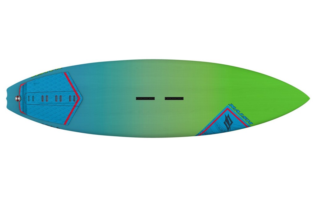 Its surface area, flat rocker, double concave bottom shaping and responsive flex provide easy planning, a smooth ride, superior edging and soft landings. Its outline is designed to provide a playful and forgiving ride—even when small chop starts to develop. It also features an angled heel-side center fin for strong upwind performance while still maintaining a playful ride.