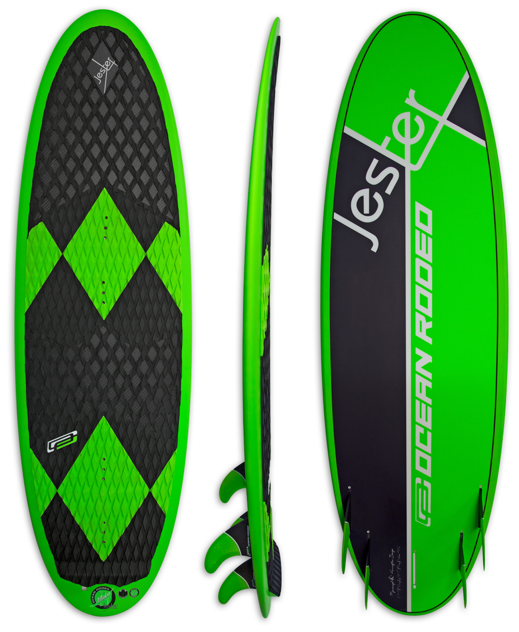 Team riders and the design team classify the Jester as hyperactive, twitchy and one hell of a fun board to ride. Built for riders of all sizes who crave a light and lively ride or ideal for a smaller, lighter rider who will appreciate the thinned volume and outline. Preloaded with its own punk attitude and flare on the water, the Jester begs for strapless freestyle riding or charging the outside peak and into a wave that only a fool would dare. Built with our Duke tested compression molded construction, full eva deck pad and future fin boxes; the Jester ships ready to ride with three possible fin set ups: Quad, Tri-Fin or Thruster. The Jester ships complete with 5 fins, foot straps and a multi tool.