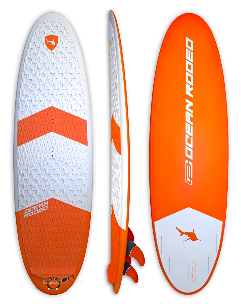 The Duke’s deep Mako concave ensures this board rides smoothly over the chop, reducing nose chatter often associated with other directional boards. The concave also helps the Duke rip up wind and leads to a much more stable board with a massive sweet spot, good for transitional footwork and landing tricks. The Duke can be setup with 3 distinct fin setups, each give the board a unique character. In tri fin mode ( one center fin, two side fin near the tail) the Duke becomes a flat water chop strapless freestyle machine making sliding moves and reverse landings easy. For more bite, move the side fins up one for true thruster setup, snappy pivot turns on the wave face. When the conditions are really good, we like to crank up the fin count with the quad set up. The Duke in quad mode is a pure delight for the dedicated wave rider, fast down the line allowing deep hard driving carves. The quad fins also get you back up wind faster, letting you ride the board flat and fast while you search for the next bomb.