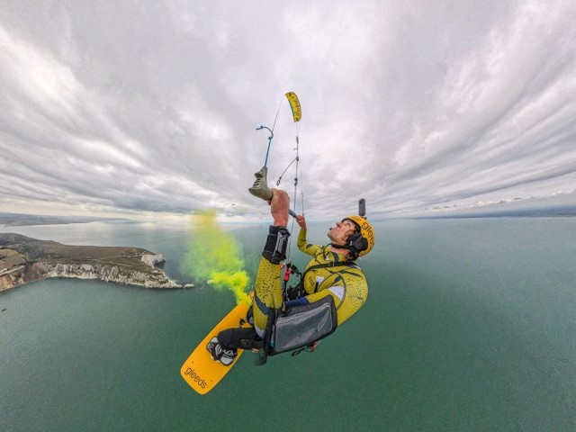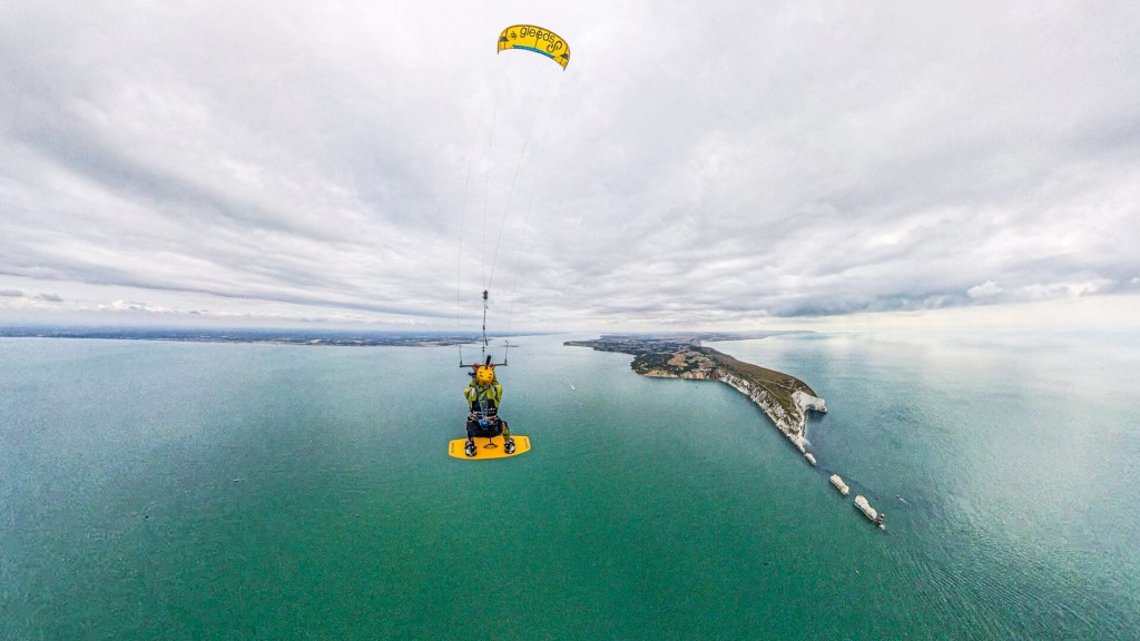 Aside from some help with a wetsuit and helmet – shout out to Sam at Worthing Watersports – we didn’t have a kite sponsor on board for the stunt. In terms of kit, we were entirely self-funded. The kite we found on the marketplace, the bar I built myself, taking components from various brands and the board I also made myself. We had a sponsor for the big day – Gleeds, a global construction consultancy, and we performed the stunt in celebration of their 150th anniversary in business.
