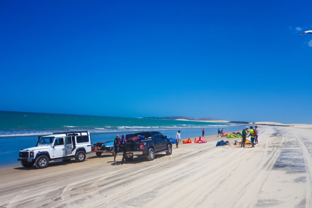 The Kite and SSF team: I arrived in the Taiba village a few days before the departure date to acclimate a little bit and to finish the preparations. The team was complete the day before the departure and we were all very pleased to get to know each other and excited to be part of this amazing experience. The team was an interesting mix of different ages and cultures and it looked like the beginning of a joke : 2 friendly Polish guys who like vodka as much as kiting (Maciek and Grzegorz), 2 Italians who have more skills in joking than in kiting (Massimo and Mateao), 2 Brazilians who did the Ironman last year (Sérgio and Ricardo), 2 Belgian guys with the same name, Cédric (including myself) and a feminine touch with a nice German girl, Doris, who came for this 600 km as training to prepare for her cross-Atlantic kitesurfing experience. But it was not a joke, we were all there to accomplish this challenge with only one common passion: kitesurfing! The organisers’ team included the nice and well organized Jalila who managed the logistics of SSF, Andrea “el Capitaine” our main guide, who has already been several times to this part of Brazil for downwinders, Janjao our local guide who came from Icaraizinho, Alex Neto pro-rider, and 2 very experienced drivers who were always smiling and helping us to land or launch our kite during the stops.