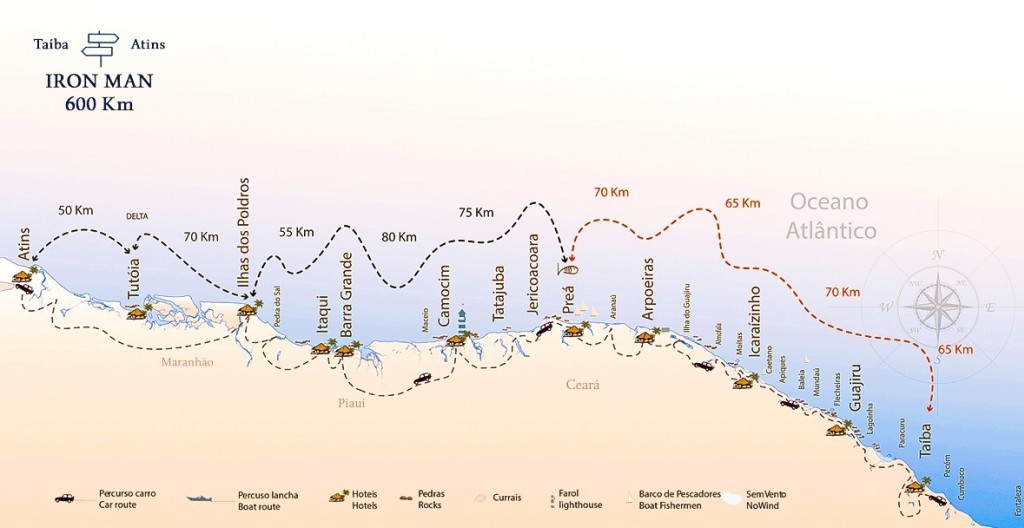Today’s distance is 60km from Itaqui to Poldros. Unfortunately, my roommate had to leave the adventure due to a sprained ankle (but we promised to finish this last part together next year). The Ironman team discovered the amazing wildlife that surrounds the delta “do Parnaiba” and untouched landscapes with extremely clean waves.