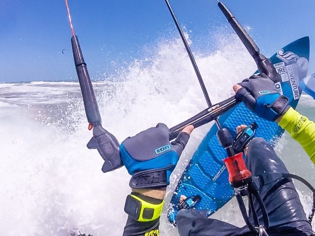 Kite material: I’m usually more interested in c-shape and hybrid kites, but I decided to look for the best material for the downwinder. I didn’t find any gear specifically made for downwinders, but the best option I found was to have a kite with good drift capabilities, so I chose from the reliable 2017 North wave lineup (kite: 2017 Neo 6m – 8m – 10m / bar: Click Bar / surfboard: Wam 5’10 / twintip: X Ride). After more than 40 hrs on the water during 6 days, I had the chance to appreciate the new 2017 North products. They are just awesome. The Neo has amazing speed rotation capabilities and it drifts more than I thought a kite could drift. I had some big crashes between rocks and waves, and when I thought I was finished, the kite relaunched perfectly and quickly without any twisted lines. Regarding the click-bar, the adjustable depower is something new because I don’t often need to change my depower. When I started to enjoy the precise power, I understood what I missed before. In addition, the automatic untwist solution during rotations that’s embedded in the bar is extremely useful so I can concentrate on my kiting instead of my front lines when I surf downwind. The new, 2017 Neo and the click bar are the perfect combo for enjoying the waves on a downwinder.