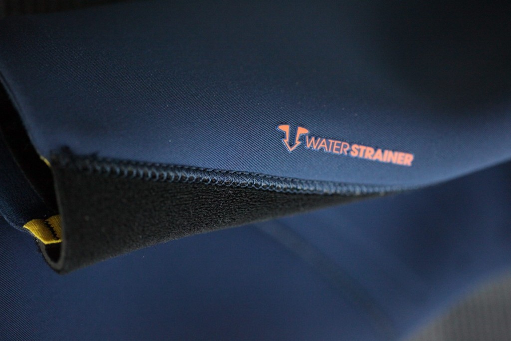 We also have some kite-specific technologies, like the water strainer that drains the water out of your leg in case of unwanted spray.