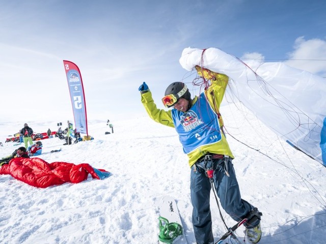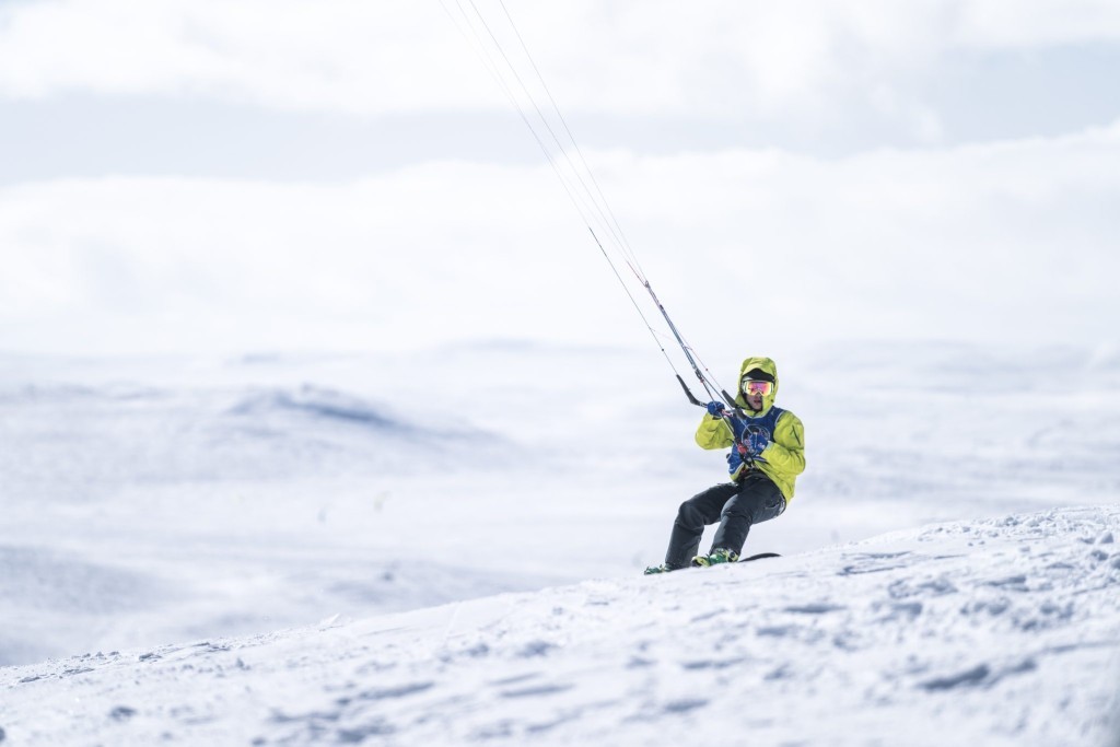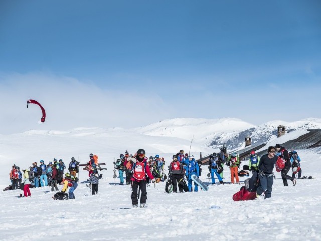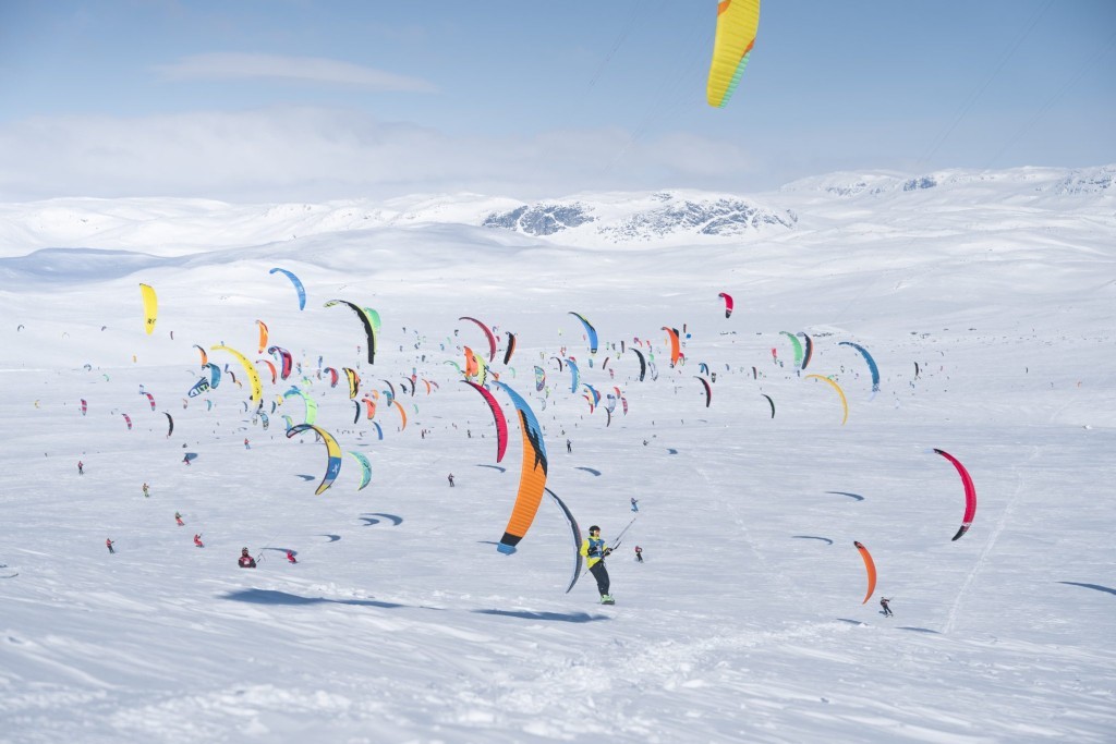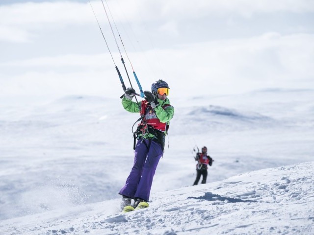 Travelling to the Hardangervidda National Park from Bergen is truly exceptional.  We passed stunning fjords and extraordinary feats of Norwegian engineering – two of the tunnels even have roundabouts in the middle of them! We arrived with a day to practice ahead of the event. After chatting with a local I discovered this area in Norway was experiencing a record snow season, with the most snow for 10 years.  The road that crosses the national park has many brilliant launch spots; I took my 9m F-One Diablo and tested out my skis for the first time. The powder didn’t make it easy, but I was getting the hang of it gradually. At one point I buried my skis in a deep snow drift, double ejecting and falling flat on my face – hilarious had anyone watching I’m sure, but slightly disconcerting when the race itself was only a matter of hours away the next morning. Full concentration would definitely be required for the duration!