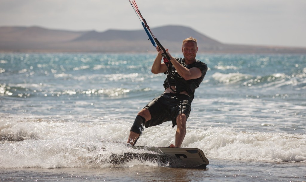 This left me with one solution and that was an ankle arthrodesis surgery, fusing my talus and tibia with another plate. The benefit would be to not have any pain because of the bone on bone, the downside however is that the movement in my ankle would drastically decrease. Running and jumping wouldn’t be possible anymore, kiting? That was the question. Obviously it was going to be different, however I was determined to get back to my kiteboard. I made the change from riding in boots to riding with straps as it gave me more freedom to fit in a brace. The brace helps to take the impact from my ankle so I can take some harder landings. It definitely took a few sessions to get used to riding with straps and riding with the brace. Whilst coming to terms with the fact that this was my new normal. With over twenty years of muscle and move memory it was hard to adjust my riding to be able to take-off and land properly again. Let alone pushing it in some more extreme conditions, when I am in my element was a hard reality to be different. Nonetheless, beyond grateful to walk again, being able to take care of my family and of course happy with every splash of water in my face when I catch some wind. Physically and mentally a huge challenge but nothing can stop me.