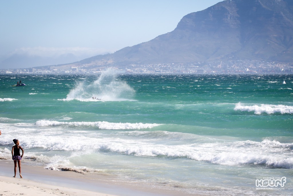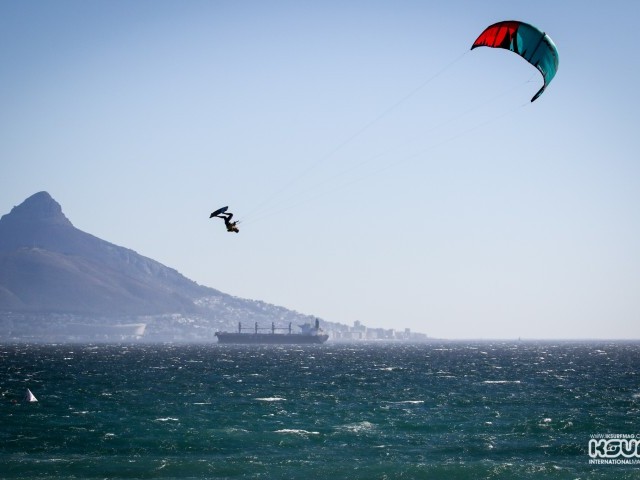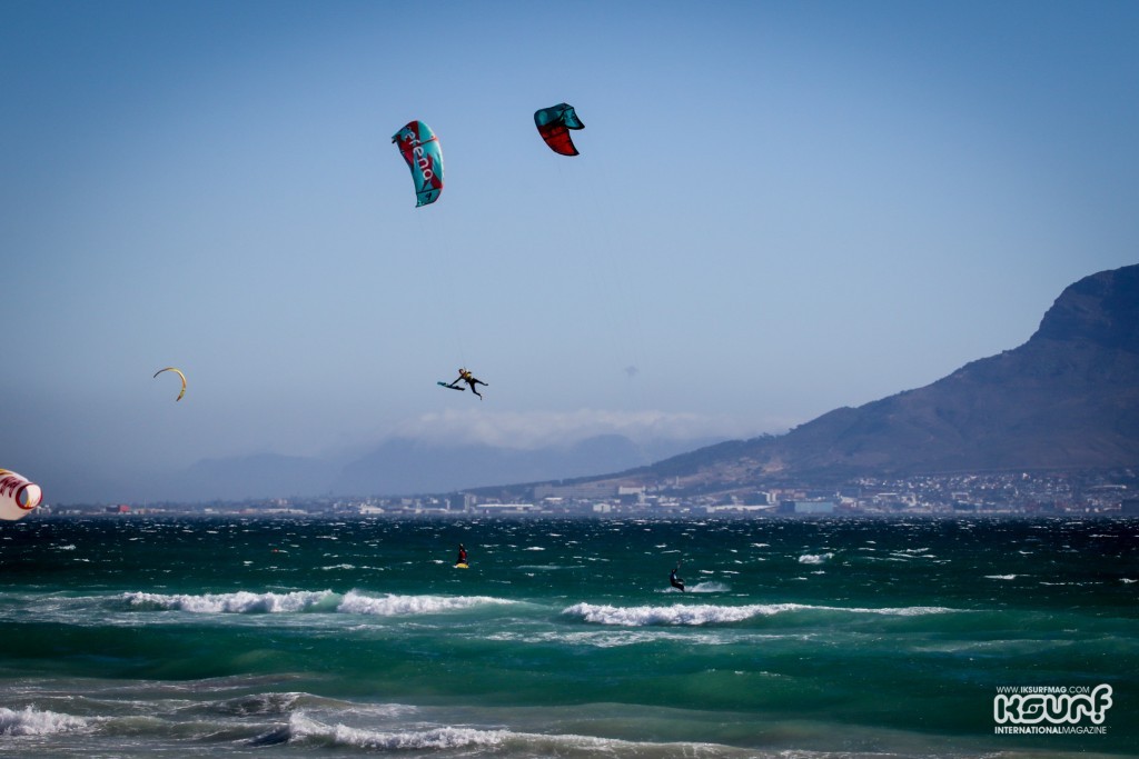 Today was shaping up nicely: the wind kicked in yesterday and blew all night, it was 8m twin tip weather at 8am this morning. However, the traditional table cloth over Table Mountain still hadn’t appeared by midday; would the Cape Doctor deliver? By 2pm things were looking desperate as the wind backed off almost entirely.
