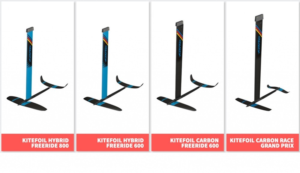There are 4 distinct set-ups in the range, each one features the Fast Connection Device, meaning if you start off with the basic model, you can then just upgrade the front wing when you progress. And if you get really into it, you could then upgrade to a carbon mast for the ultimate in performance. All the foils use the K-F Box system to connect to the board, this involves two bolts and leaves a perfectly flush finish on the underside of the board.