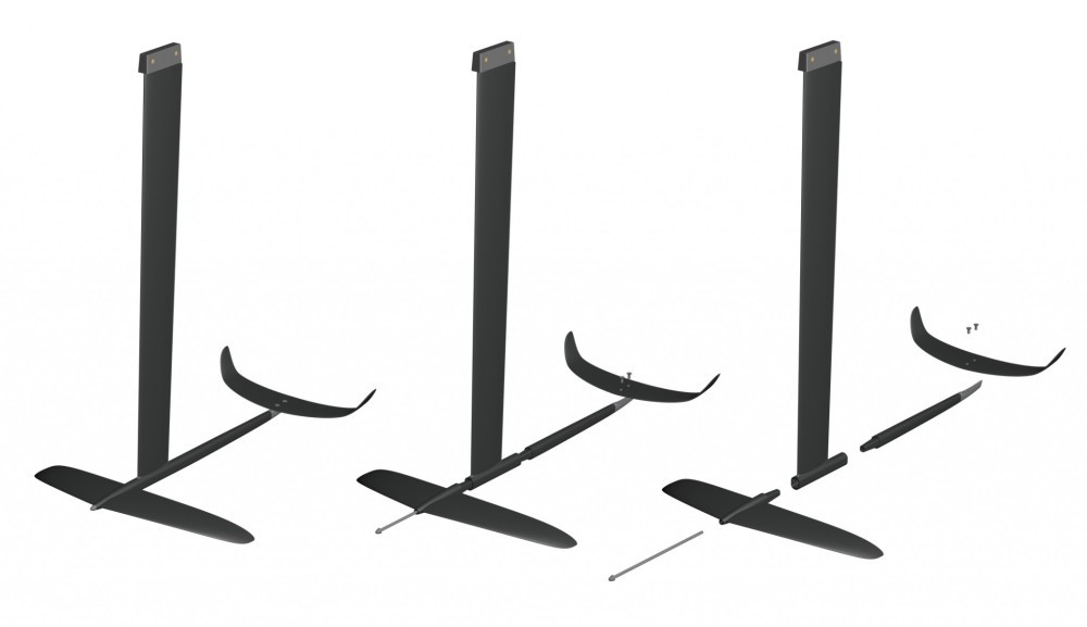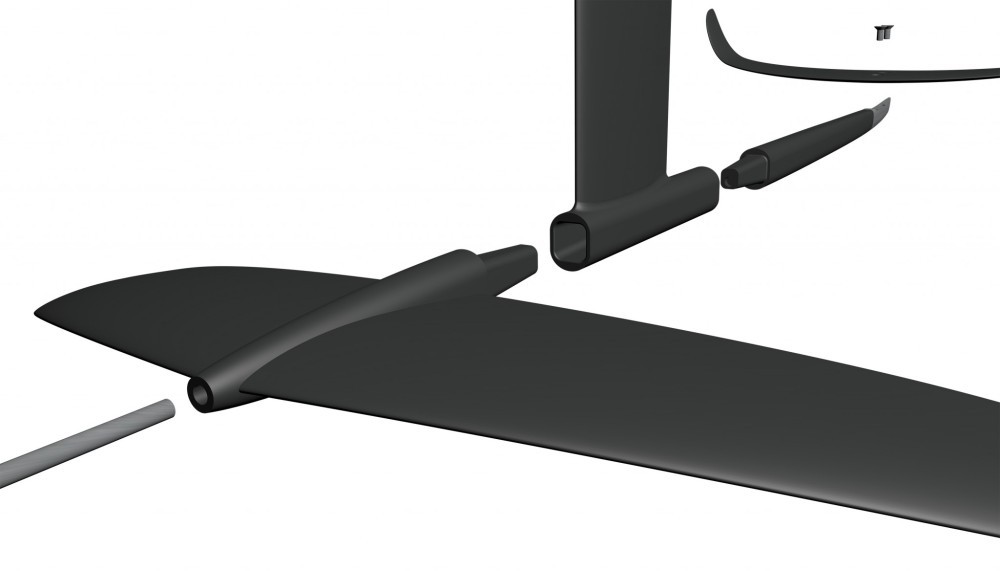 The beginners model in the range has a lower aspect front wing designed to foil at lower speeds to make learning to ride much easier. The wing, fuselage, and stabiliser are all made from pre-preg carbon. The rear stabiliser bolts on which is new for this year, this allows you to pack the whole set up down much smaller and means you can change the front and rear wings would you desire too.
