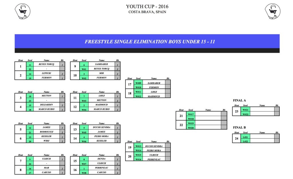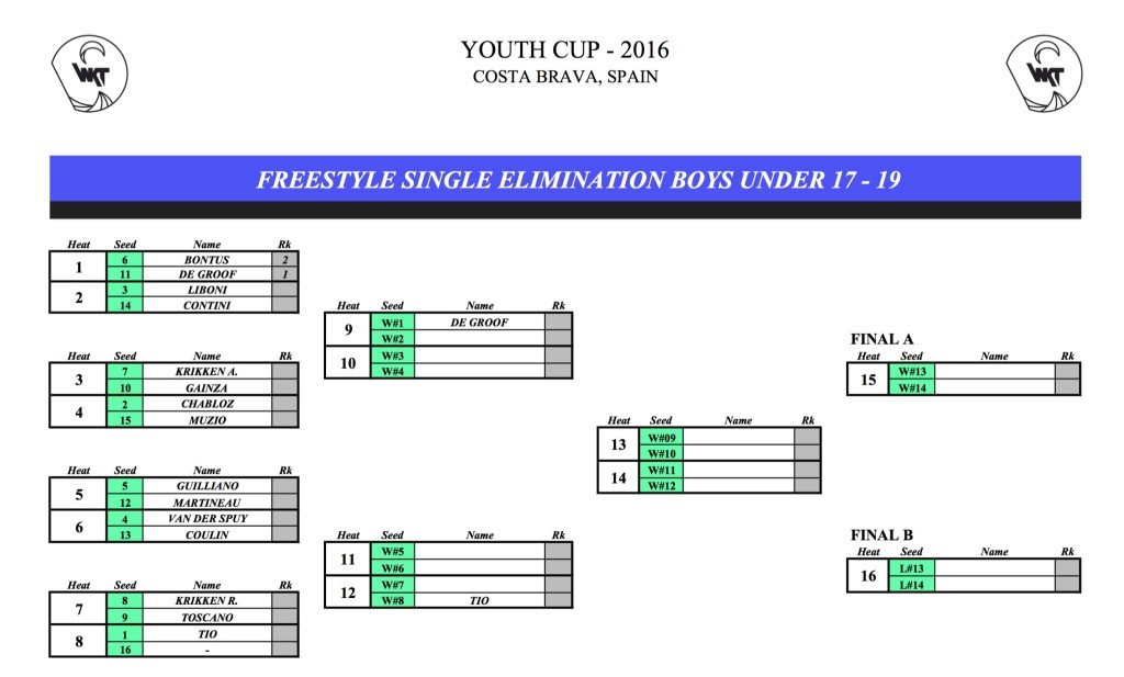 Action has been hot at the 2016 World Kite Tour Youth Cup, in Costa Brava, Spain. Riders age 19 and under, from all over the globe, have convened to compete for the top spot on the podium. Boy’s single elimination was the highlight of day two. Read all about it below, and stay tuned for more updates throughout the week.