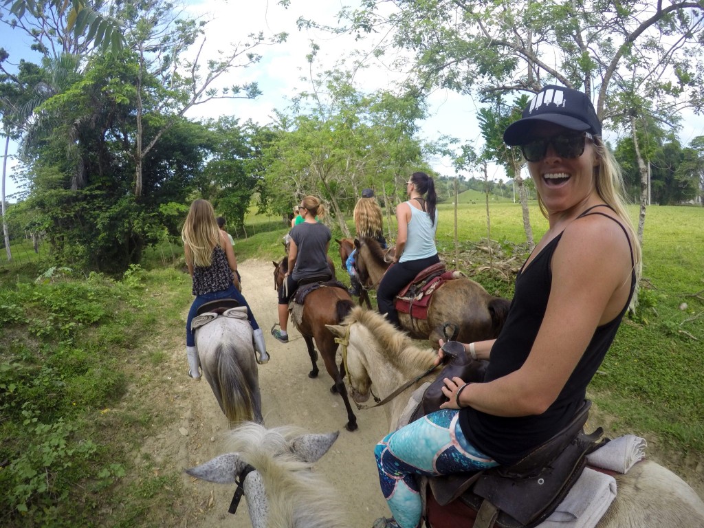 On day five even Mother Nature needed a day off. The forecast didn’t look fantastic, so we make other plans. Many of the ladies went for a morning surf session down at the local spot, Encuentro, which is always pumping. Post-surf, I made a quick call to Tommy’s Ranch and we are all set for a day of horseback riding through the Dominican Jungle. After a short drive to Sabaneta we were briefed by Tommy about the adventure we were about to undertake as we chose our horses for the day. Like true Dominicano, we took the trail less traveled and made our way up into the mountains to see the real Hispaniola. Riding through small campos, we see the uncomplicated daily life of the average Dominican.