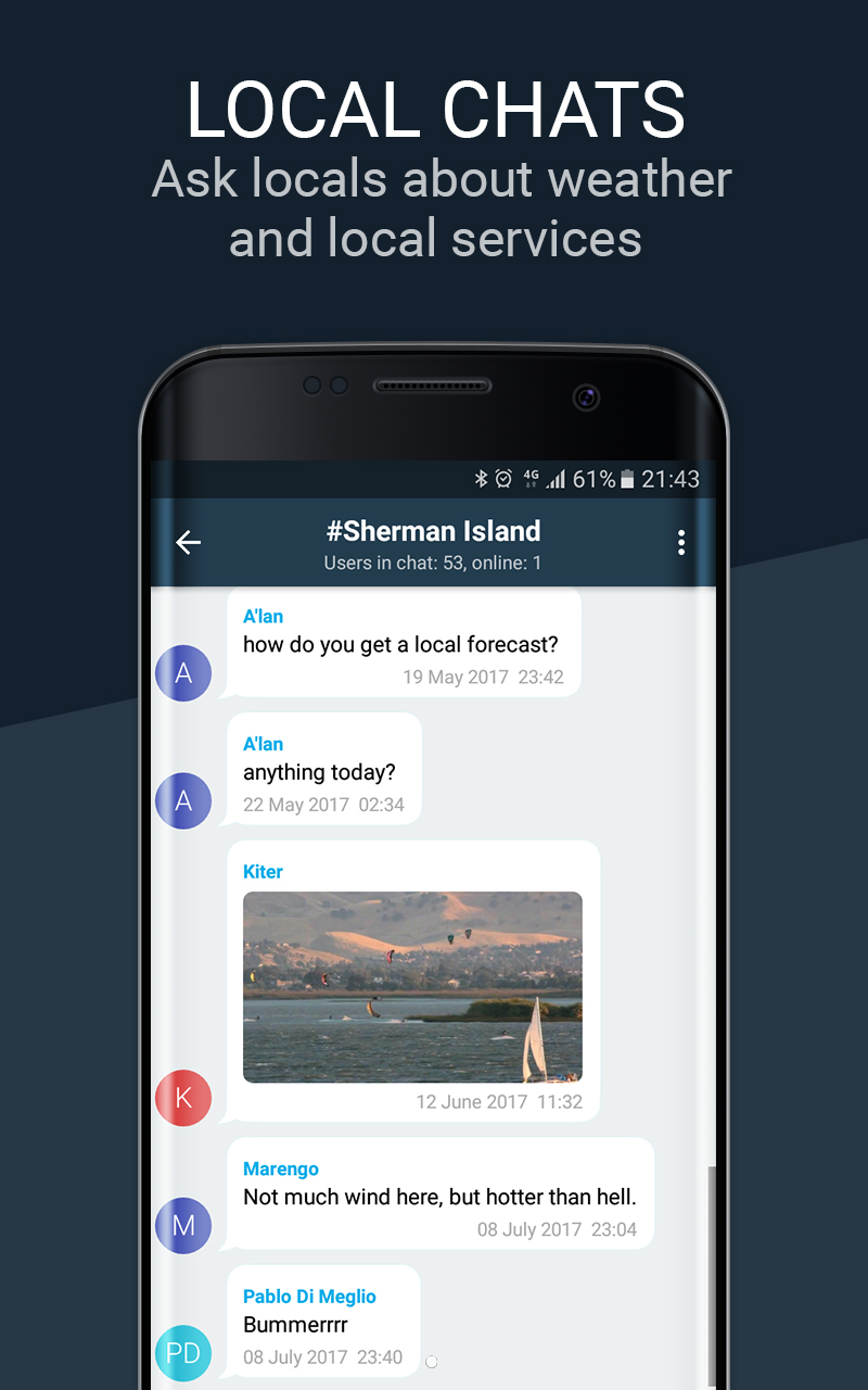 WINDY is developed in close contact with users, displaying nearby spots ranked by popularity, with chats for getting in touch with locals. Now, users can get answers to their questions and feedback from local, like-minded enthusiasts within minutes. Chats are even available for less popular spots.