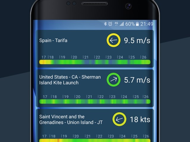 WINDY, available for iOS and Android devices, offers data from over 30,000 locations with the option of adding spots to favorites and searching among spots or weather stations.