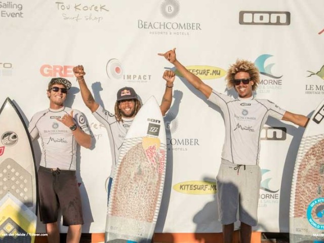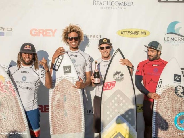 So, where to begin after a dramatic end to the men’s division at the GKA Mauritius finals and the crowning of a new world champion today in Le Morne? Today began with the first heat of the quarter-finals, and the stakes were high. The race for the championship title was down only to Matchu Lopes and Airton Cozzolino but Paulino Pereira would have to beat Brazilian charger Sebastian Ribeiro and then contend with Keahi de Aboitiz to still be holding his third place ranking by the end of the day.