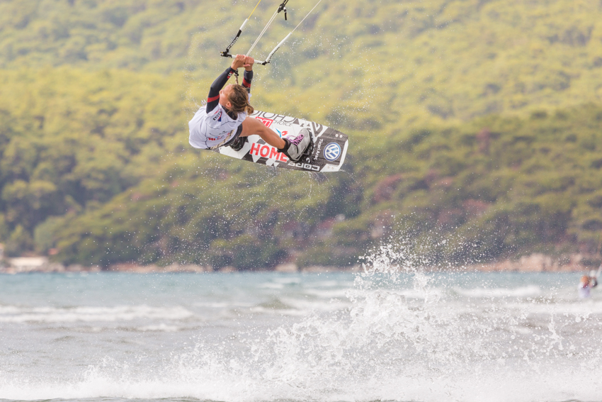 The Women’s Round 1 and 2 were first to be completed, with the 6 final athletes being Hannah Whiteley, Francesca Bagnoli, Paula Novotna, Rita Arnaus, Annabel Van Westerop and Bruna Kajiya. The wind conditions were ideal as we headed into the start of the final. Hannah Whiteley had a hard start with two crashes, but she made up for it with an impressive Back Mobe scoring 8.03, but unfortunately, it wasn’t enough to gain her a podium position. Francesca Bagnoli from Italy landed 5 good scoring tricks, but the level in the final was high, so she remained in 5th position. Paula Novotna from the Czech Republic continued in the finals with her powerful riding, and fought hard for a podium position, landing a powered Heart Attack, but her last two trick attempts were crashes and it cost her dearly, leaving her just one spot short of the podium.