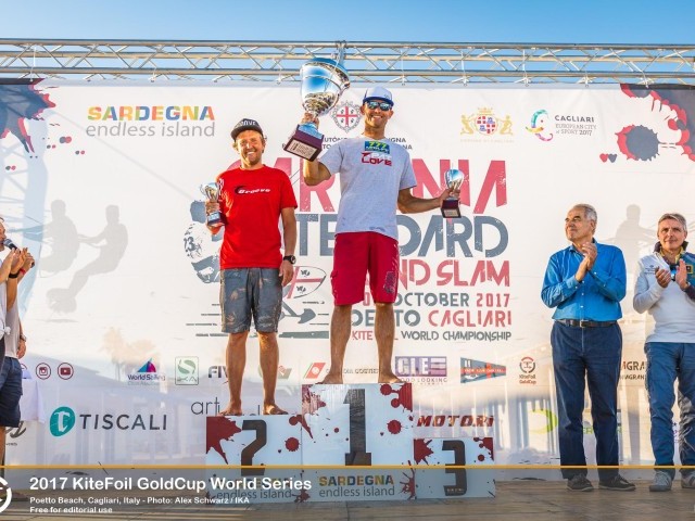 With virtually all the leading men among the 39-strong fleet from 14 nations at the Sardinia Kiteboard Grand Slam—sponsored by the City of Cagliari and Tourism Sardinia, supported by Yacht Club Cagliari—the five-day event produced some of the fastest, tightest racing of the year.