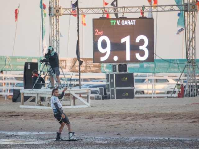 It was stop and go for Heat 11, as the heat was postponed for one hour after the 4th round of tricks due to the decreasing wind conditions. However, the wind returned, and Arthur Guillebert was in fine form from the start. However, he crashed two trick attempts at the end of the heat which pushed him out the top two. Posito Martinez returned to the heat riding full power and performed an aggressive BS317 scoring 8.63 points. It was up to Alex Neto from Brazil to respond, and he did so with an amazing Slim 7, scoring 8.83 points and boosting him up to 1st position. Hadlow rose to the occasion with a Slim 7 of his own, also giving him a nice score of 8.1 points, but it was Posito Martinez who managed to perform a 317 on his last trick attempt, catapulting him up into 2nd place, and leaving no room for Hadlow or Guillebert to advance. Neto and Martinez secured their spots in tomorrow’s semi-finals.