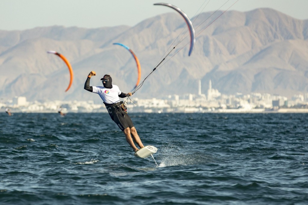 France’s Nico Parlier dominated in breezes that freshened and hovered between 9 and 11 knots for much of the day off Muscat’s Al Mouj Beach on the Gulf of Oman, framed by a dramatic mountain backdrop.