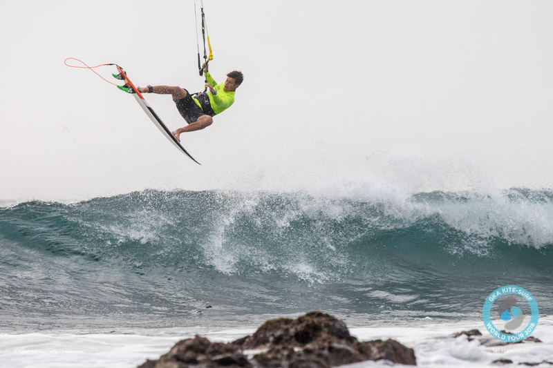Airton launched into the heat with some of the best aerials we’ve seen so far at the event, attacking each wave until he was ‘danger-close’ to the rocks as the home crowd went wild.