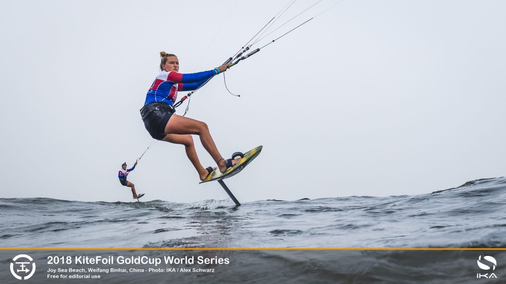 Bridge’s stellar outing on the two laps of the windward-leeward track on the Yellow Sea in 13kts to 18kts boosted his quest for overall victory at the International Kiteboarding Association (IKA) KiteFoil World Series season opener.