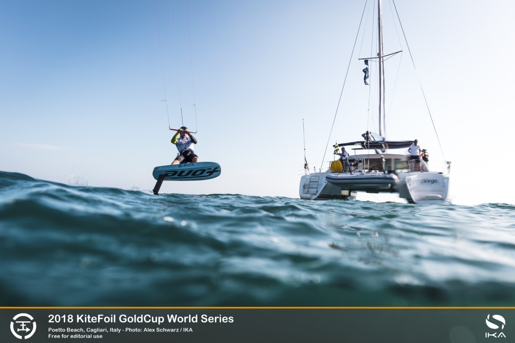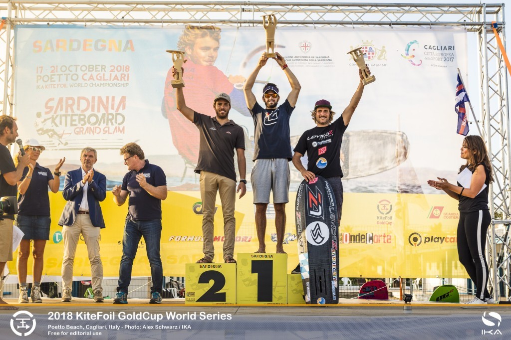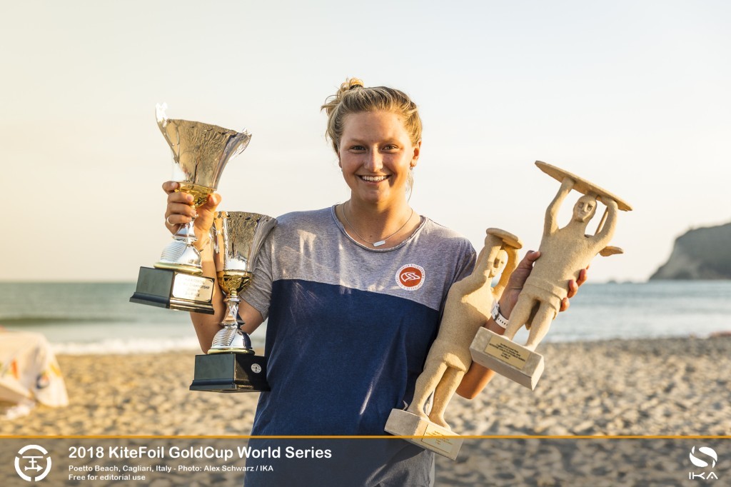 Congratulation Maxime Nocher and Kirstyn O’Brien! With Maxime finishing 2nd here at the KiteFoil Gold Cup Final in Sardinia, behind Regatta winner Nicolas Parlier, he takes the title as World Champion 2018. For the girls, Daniela Moroz won the Kite Gold Cup Final this week, but Kirstyn had enough series point to still take the world title.