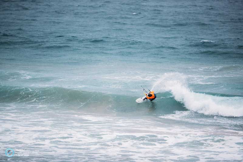 However, with a pushing tide and dead onshore winds to contend with the competitors and race crew knew it was going to be a struggle for any of the riders to compete without being pushed back to the beach after every wave.