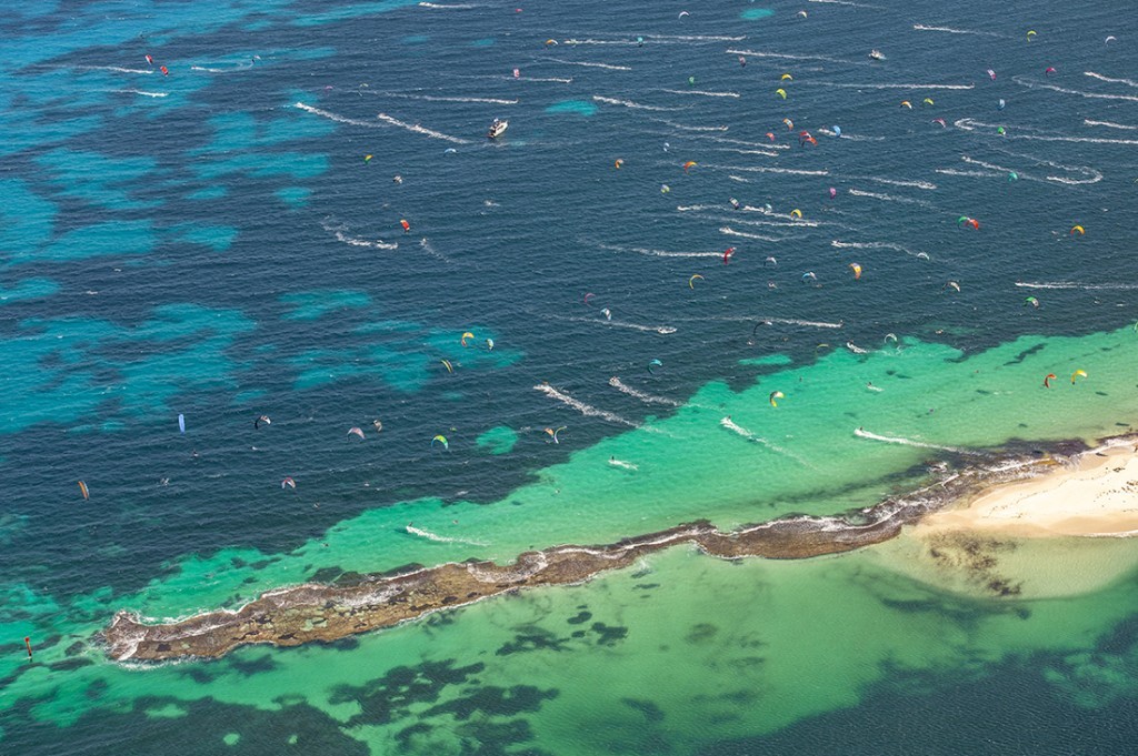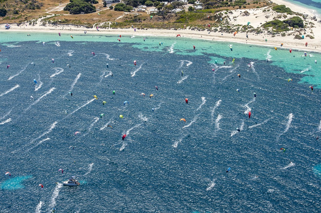A new speed record was set in today’s Red Bull Lighthouse to Leighton kiteboard race from Rottnest Island to Leighton Beach in Fremantle, Western Australia. Young Englishman Guy Bridge smashed the race record and did the 19km crossing in just 18 minutes, 49 seconds. 135 kiteboarders took part in perfect kiteboarding conditions.