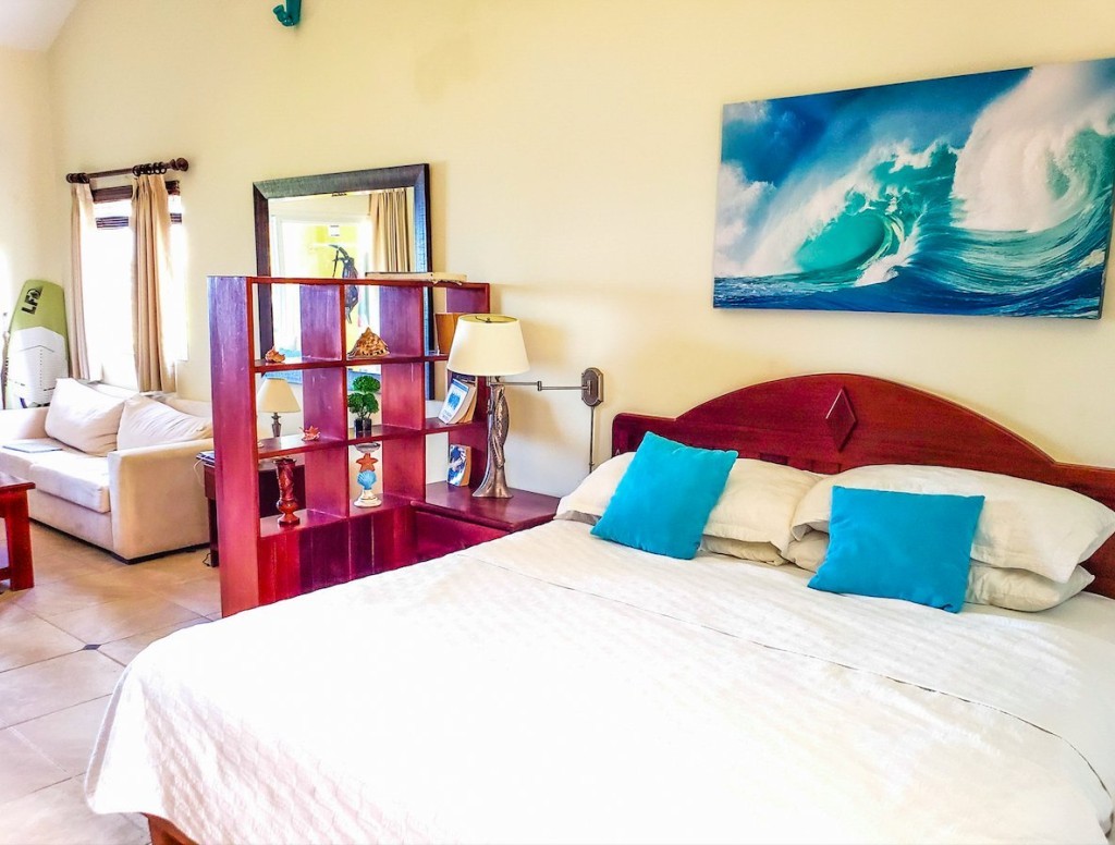 We are located smack in the middle of the world famous Kite Beach. Cabarete is one of the most consistent places in the world for year-round kitesurfing. The shore break is small with flat water on the inside, and glassy waves breaking on the reef about 200m offshore. The water is warm, so leave your wetsuit at home!