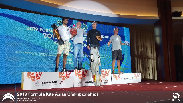 By contrast Russian veteran racer Denis Taradin barely put a foot wrong. He seized a remarkable 12 bullets that gave a commanding points lead by the finish that landed him the 2019 International Kiteboarding Association (IKA) Formula Kite Asians “open” title.