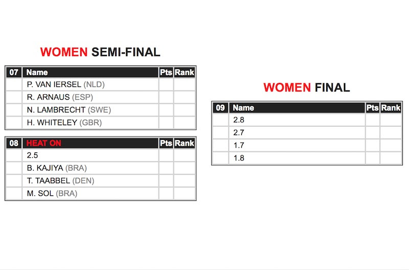 Bruna’s victory meant she would go straight through to the first women’s semi-final heat against Therese Taabbel and fellow Brazilian Mikaili Sol.