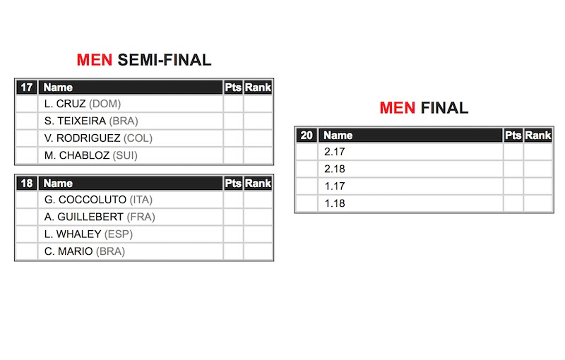 Check the heat ladders below to see what’s coming up in both the men’s and women’s divisions.