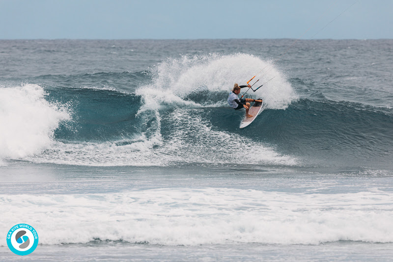 When you come to Mauritius, you always have to beat Ninja Ricot if you want to win the crown. Formerly, Ninja Bichler, she was the 2016 GKA Kite-Surf World Cup Mauritius Champion and the 2012 winner when the KSP ran the tour here, so is the undisputed queen of waves on this island.