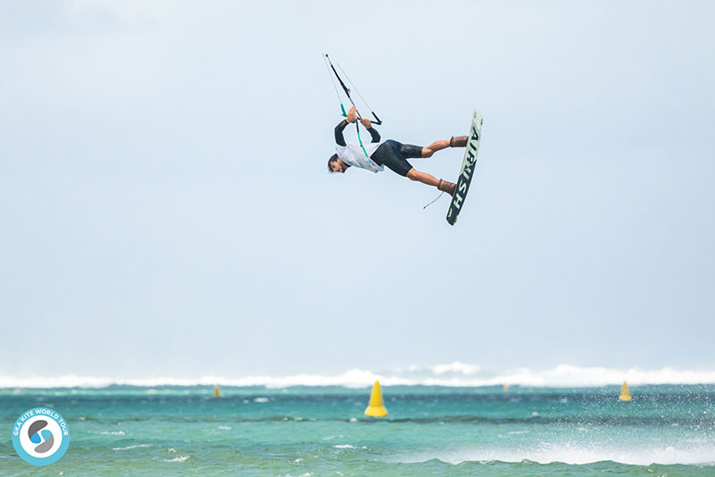 Tee’d up for a big day on Monday! A much stronger wind was blowing early this morning, and the first men’s Freestyle heats were on the water by 9 am sharp. The agenda was packed, and after a long and intense day of competition here at the GKA Kite World Cup Mauritius event, which is taking place in front of the Heritage Resort in Bel Ombre, we’ve reached the women’s Freestyle semi-final and men’s quarter-final stage.