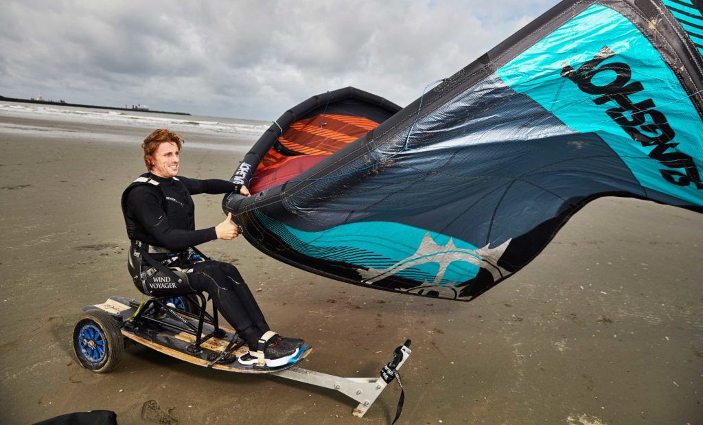 I wanted to know who this man was and which board he was using. This knowledge could pave my way to progress! We started our search for him. Believe it or not, from anywhere in the world where he could live, he lived less than 30 minutes away from me. Three days later we met him at the beach in Holland. He showed me his board and told me everything about his experience. He said he started sit-kitesurfing six years ago and every year improves on the sit-kiteboard he uses. It is custom made, and only a handful of people in the kite world have one of these unique boards. I started crowdfunding at that time to have my board produced.