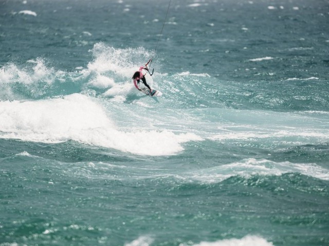 We ran a Pure Wave format with 14-minute heats, and three minute breaks in-between. Men were riding 7-9m2 kites, and women were riding 6-9m2 kites. The sun came out, the crowds were dancing, and the riders were excited to get on the water!